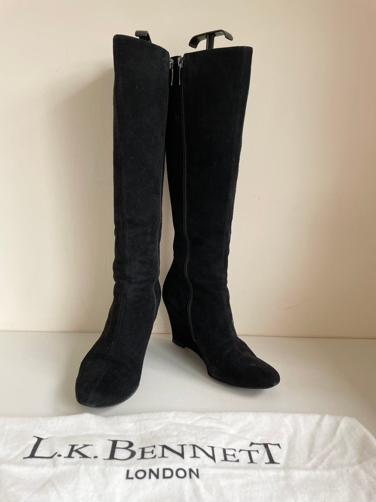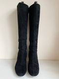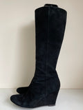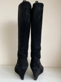 LK BENNETT BLACK SUEDE WEDGE HEEL KNEE LENGTH BOOTS SIZE 5/38