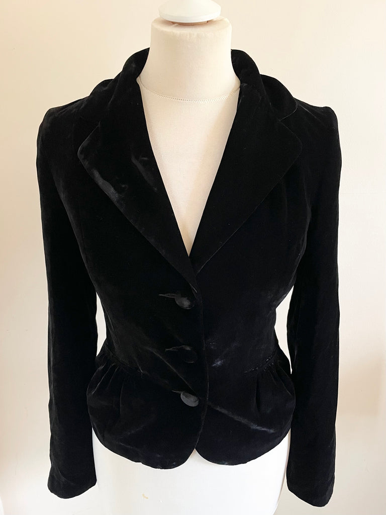 LK BENNETT BLACK SILK LINED VELVET FITTED JACKET