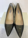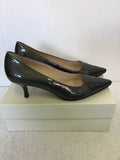 LK BENNETT BURY DARK GREY PATENT LEATHER HEELS & MATCHING CLUTCH BAG SIZE 7.5/41