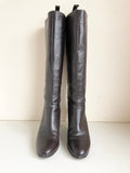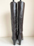 LK BENNETT DARK BROWN LEATHER KNEE LENGTH BOOTS SIZE 5/38