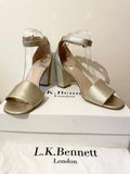 LK BENNETT HESTER SOFT GOLD METALLIC BLOCK HEEL SANDALS SIZE 7.5/41
