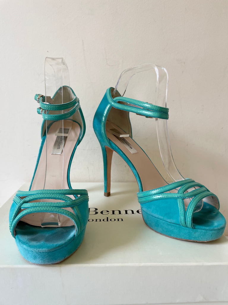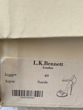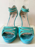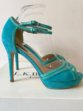 LK BENNETT JAGGER AQUA / TURQUOISE SUEDE HIGH HEEL PLATFORM SANDALS SIZE 7/40