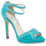 LK BENNETT JAGGER AQUA/ TURQUOISE SUEDE & PATENT LEATHER TRIM SANDALS