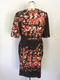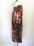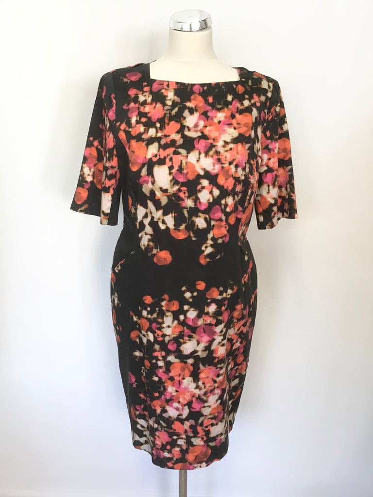 LK BENNETT LETICIA BLACK ORANGE & PINK PRINT SHORT SLEEVE COTTON DRESS SIZE 16