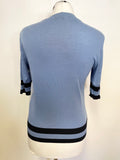 LK BENNETT MICHI BLUE FINE KNIT SHORT SLEEVED TOP SIZE S