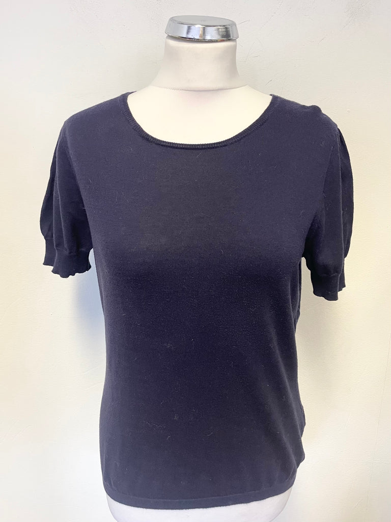 LK BENNETT NAVY BLUE COTTON SHORT SLEEVED JUMPER