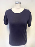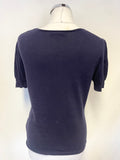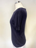 LK BENNETT NAVY BLUE COTTON SHORT SLEEVED JUMPER SIZE L