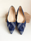 LK BENNETT NAVY BLUE & WHITE POINTED TOE TEXTILE FLATS SIZE 7.5/41