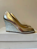 LK BENNETT PALE GOLD LEATHER PEEP TOE WEDGE HEELS SIZE 5/38
