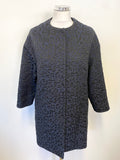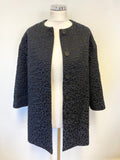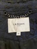 LK BENNETT PORTIA NAVY BLUE EMBOSSED DESIGN 3/4 SLEEVED SHORT OCCASION COAT SIZE XS