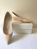 LK BENNETT SAFFIANO PERLA ROSE PALE PINK LEATHER KITTEN WEDGE HEELS