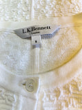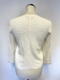 LK BENNETT SHYLA WHITE TEXTURED 3/4 SLEEVE CARDIGAN SIZE S