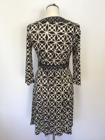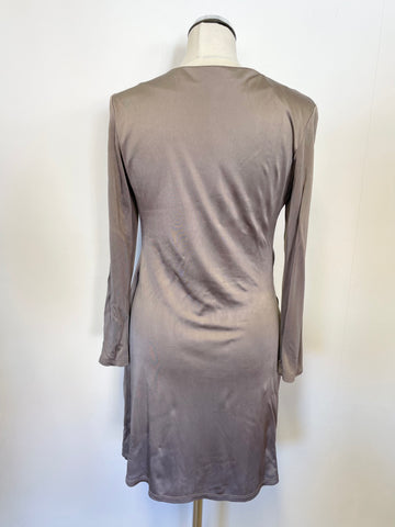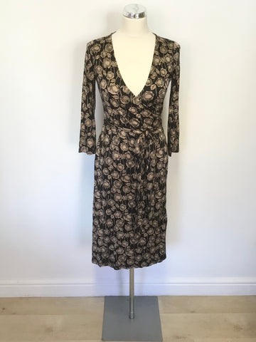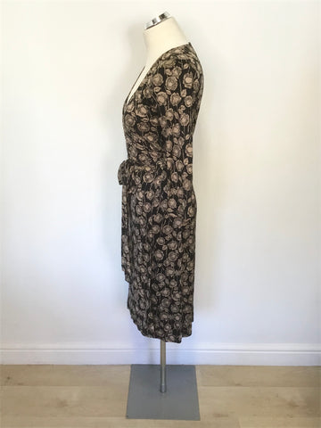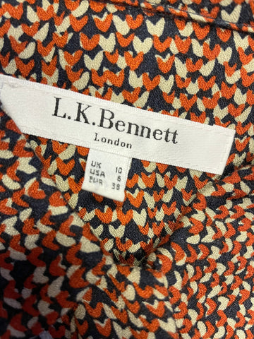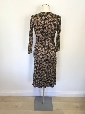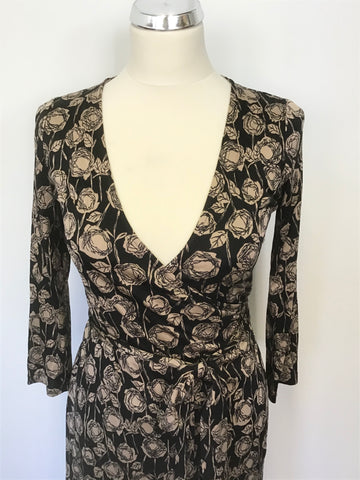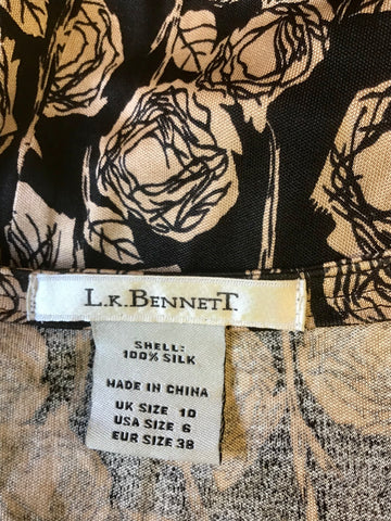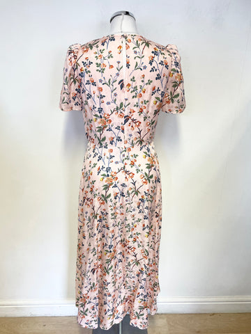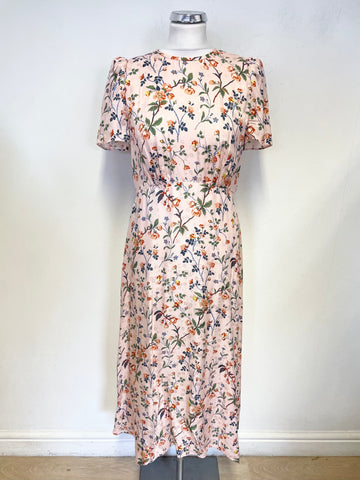LK BENNETT BOYD 100% SILK PINK FLORAL SHORT SLEEVE EMPIRE LINE MIDI DRESS SIZE 10