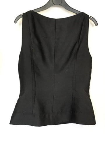 LK BENNETT BLACK SLEEVELESS SILKY PANEL SLEEVELESS TOP SIZE 10