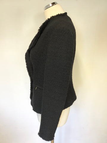 LK BENNETT BLACK WOOL BLEND JACKET SIZE 10
