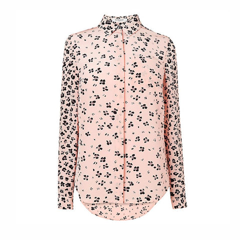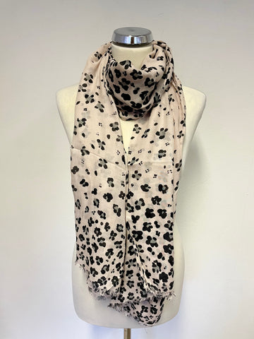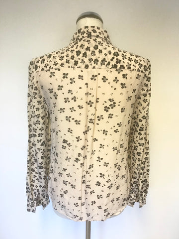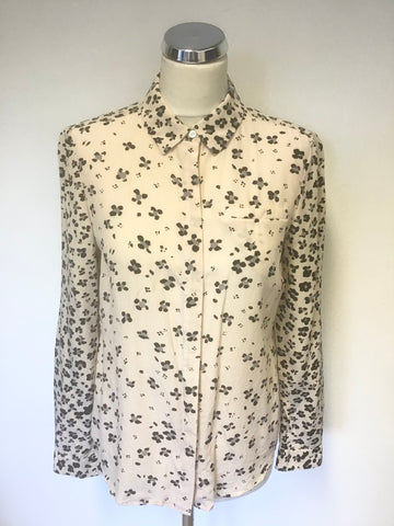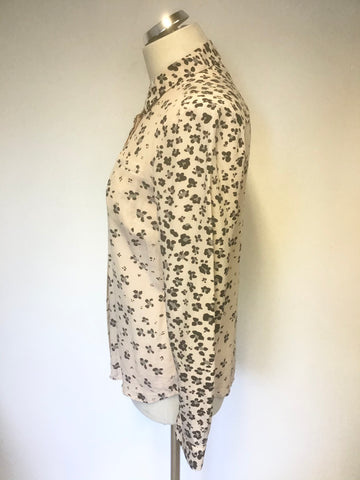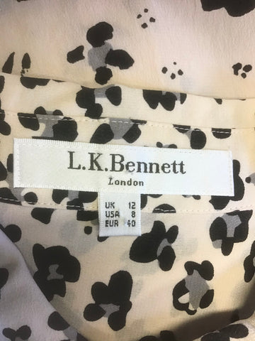 LK BENNETT ‘BLUES’ BLUSH PINK WITH BLACK & GREY PRINT SILK SHIRT SIZE 12