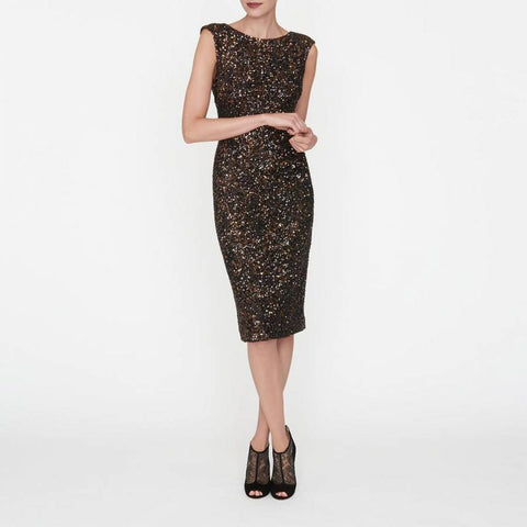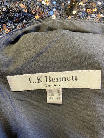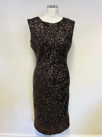 LK BENNETT QUINN BLACK & BRONZE SEQUINNED SLEEVELESS COCKTAIL DRESS SIZE 12
