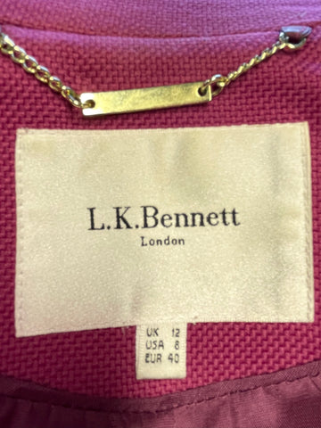 LK BENNETT SASKIA DEEP ROSE SHORT SLEEVE PENCIL DRESS SIZE 12