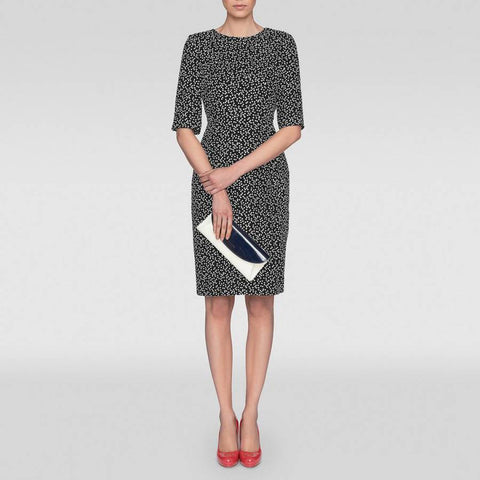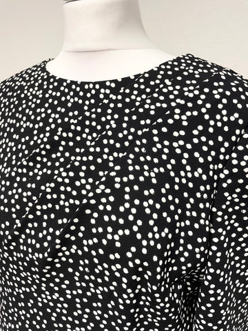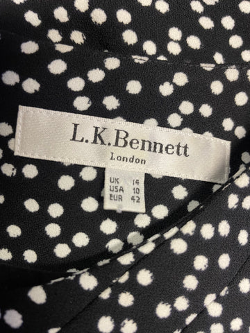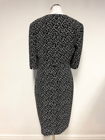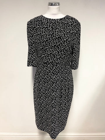 LK BENNETT YOLANDA BLACK & WHITE SPOT HALF SLEEVE PENCIL DRESS SIZE 14