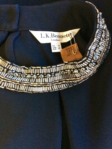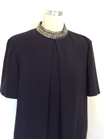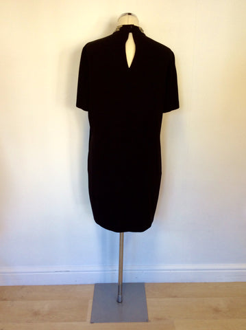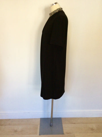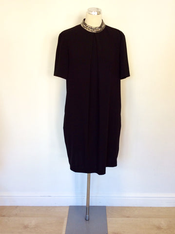 LK BENNETT STAR BLACK EMBELLISHED NECK SHIFT OCCASION DRESS SIZE 14