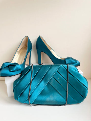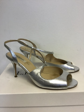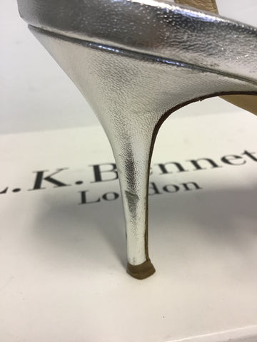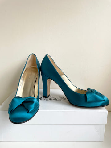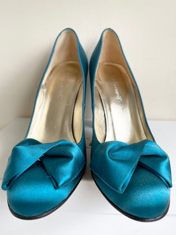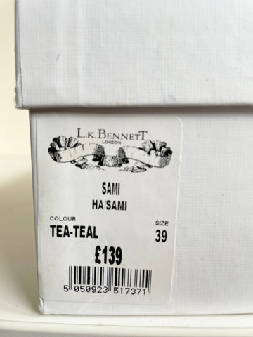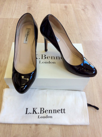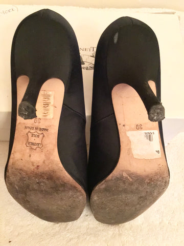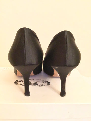 LK BENNETT SOFFI BLACK SATIN PEEP TOE FLOWER TRIM HEELS SIZE 6/39