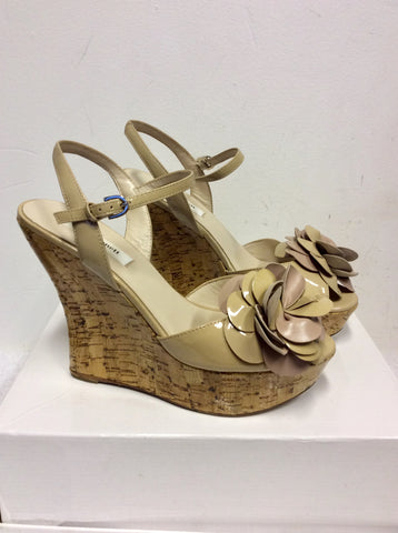 LK BENNETT MOYA BEIGE SUEDE & PATENT LEATHER TOE HEELED KNEE LENGTH BOOTS SIZE 6/39