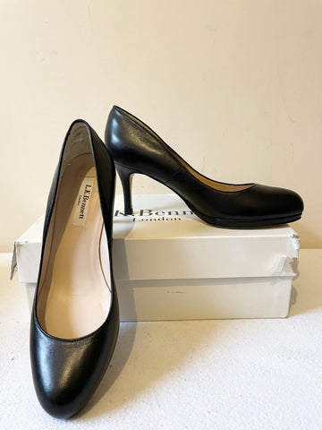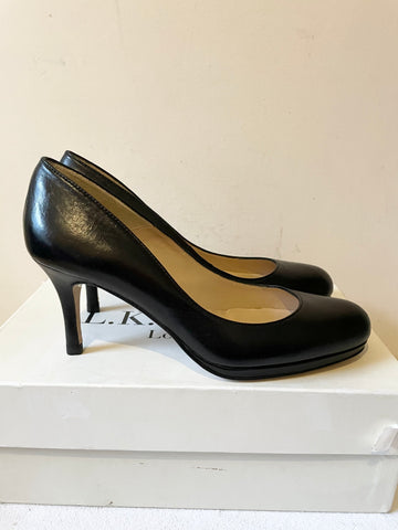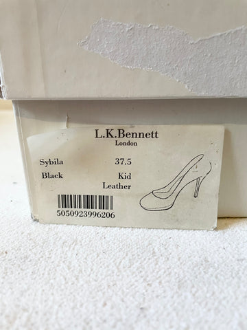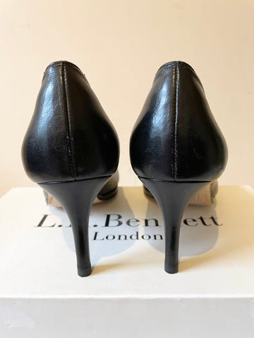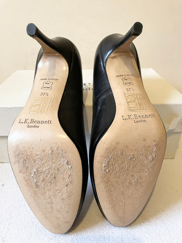 LK BENNETT SOFFI BLACK SATIN PEEP TOE FLOWER TRIM HEELS SIZE 6/39