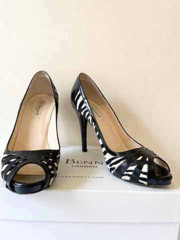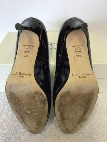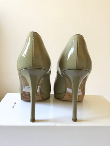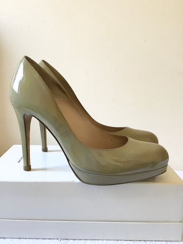 LK BENNETT SCRUPLE TAUPE PATENT LEATHER PEEPTOE HEELS SIZE 5/38