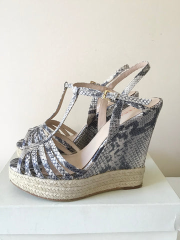 LK BENNETT SAFFIANO PERLA ROSE PALE PINK LEATHER KITTEN WEDGE HEELS SIZE 3.5/36