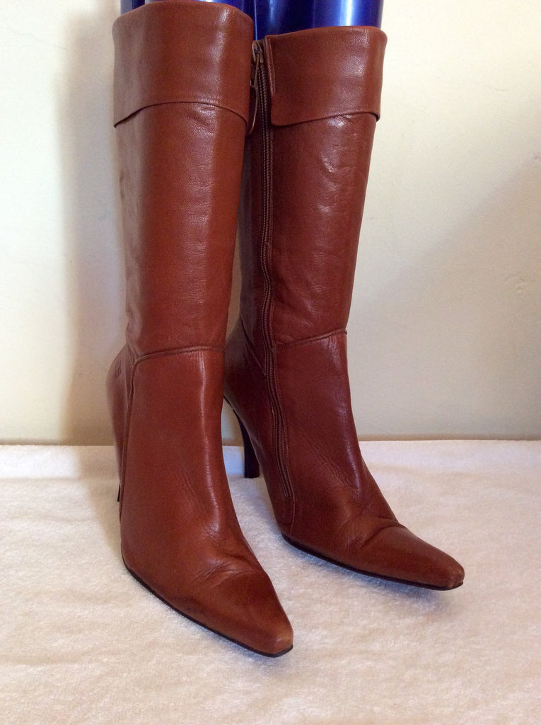 Logo 69 Tan Brown Leather Calf Length Boots Size 5/38