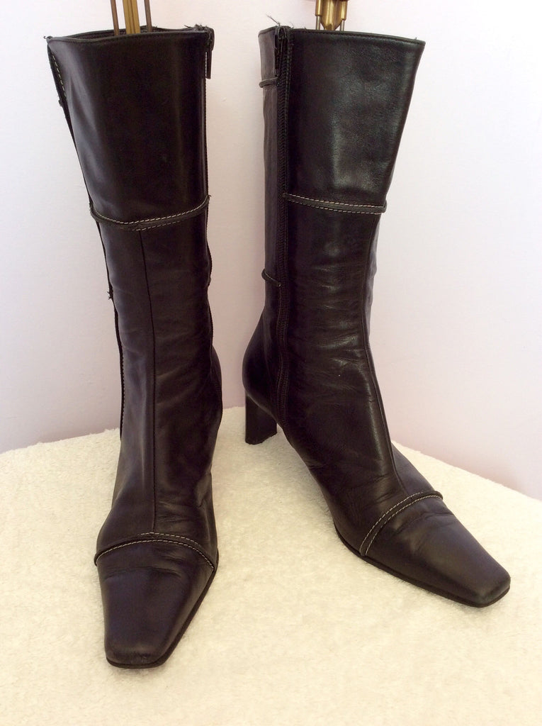 Lorbac Black Leather Calf Length Boots Size 5/38