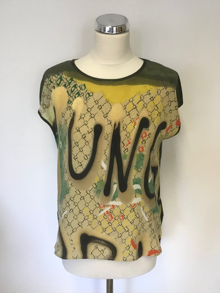 LUISA CERANO DARK GREEN SILK FRONT PRINT CAP SLEEVE TOP SIZE 14