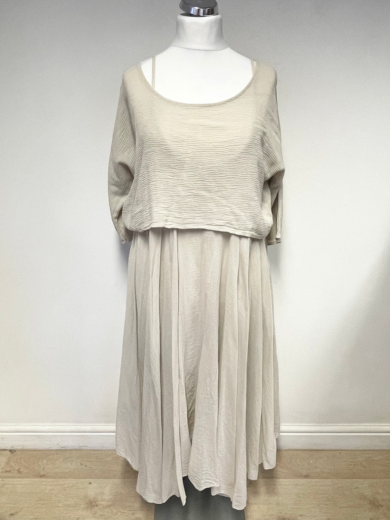 MADE IN ITALY BEIGE THIN STRAP FLOATY DRESS WITH MATCHING CROPPED TOP ONE SIZE