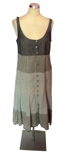 Marc Aurel Grey & Black Gingham Check & Stripe Cotton Dress Size 40 UK 14