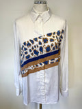 MARC AUREL WHITE, BLUE & CAMEL PATTERNED FRONT LONG SLEEVE SHIRT SIZE 40 UK 14