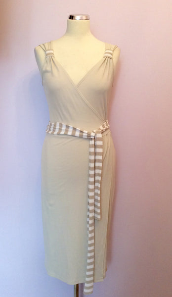 Marccain Beige & White Stripe Wrap Dress Size N3 UK 12/14