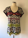 MARCCAIN SPORTS BLACK & MULTI COLOURED PRINT CAP SLEEVE T SHIRT SIZE N4 UK 14