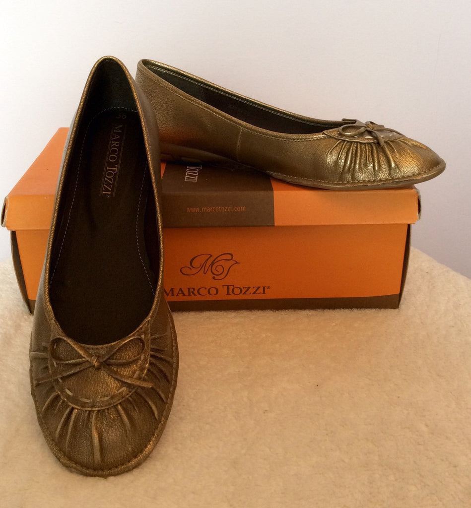 Brand New In Box Marco Tozzi Bronze Flat Shoes