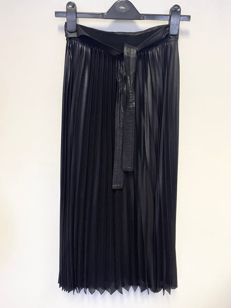 MARELLA BLACK ELASTICATED TIE WAIST KNIFE PLEATED MIDI SKIRT SIZE 8
