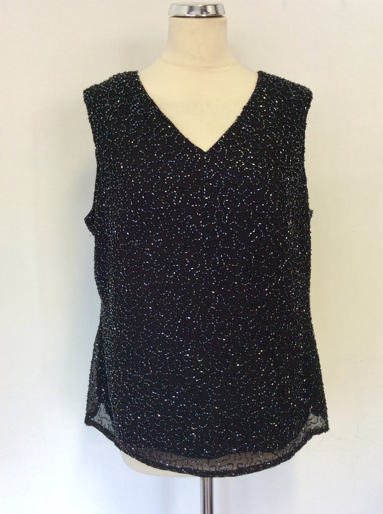 Marina Bresler Black Beaded Sleeveless Top Size XL