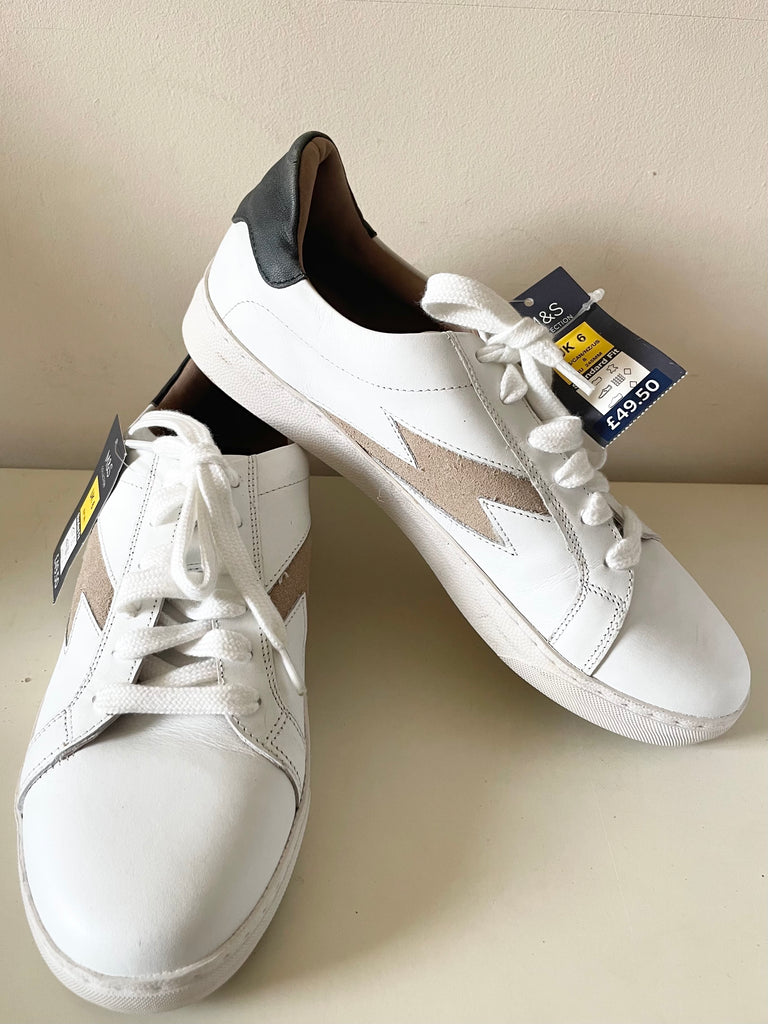 BRAND NEW MARKS & SPENCER WHITE & BEIGE LEATHER TRAINERS