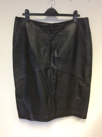 MARKS & SPENCER AUTOGRAPH BLACK SOFT LEATHER STRAIGHT SKIRT SIZE 18