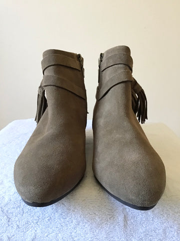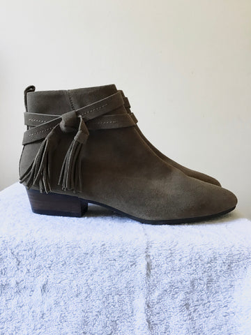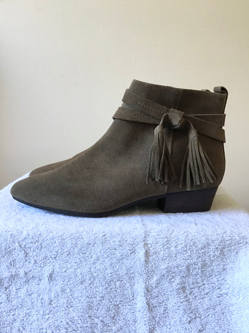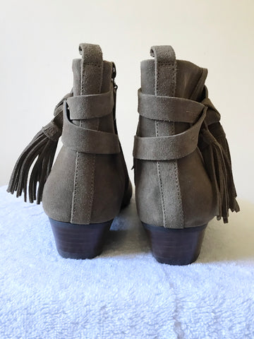 BRAND NEW MARKS & SPENCER OLIVE BROWN SUEDE TASSEL TRIM ANKLE BOOTS SIZE 5.5/39