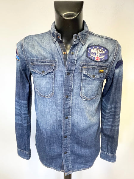 SUPERDRY BLUE DENIM COLLARED LONG SLEEVED SHIRT SIZE S