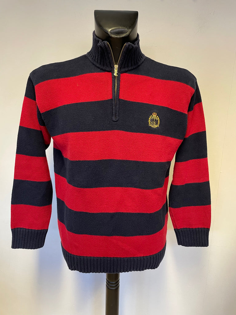 RALPH LAUREN NAVY & RED STRIPE ZIP NECK JUMPER SIZE L