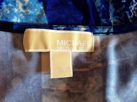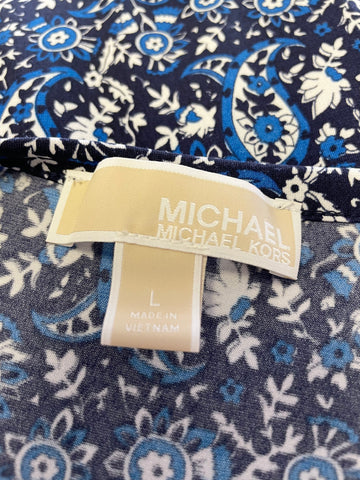 MICHAEL KORS NAVY & GOLD PRINT LATTICE GEORGETTE MAXI DRESS SIZE L