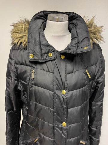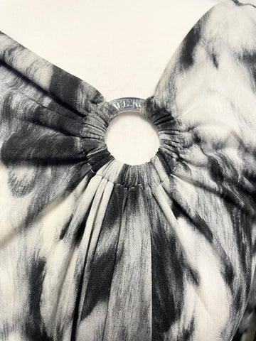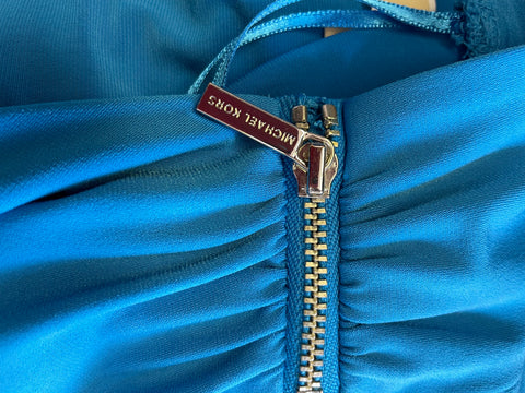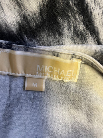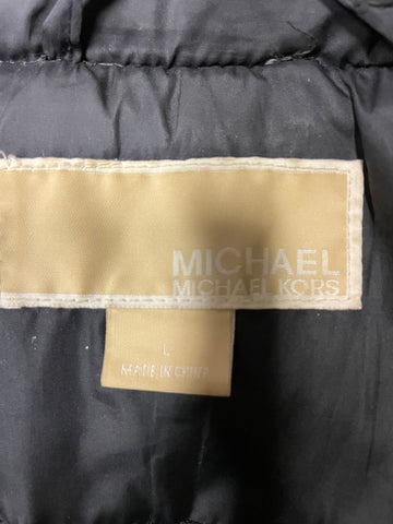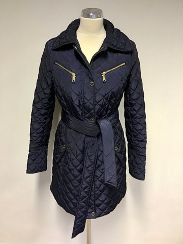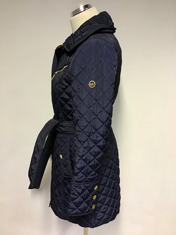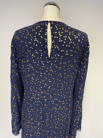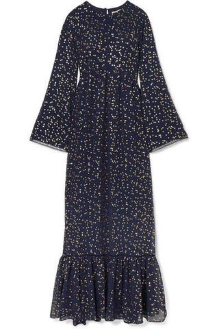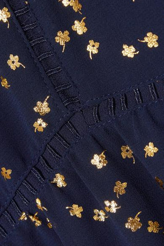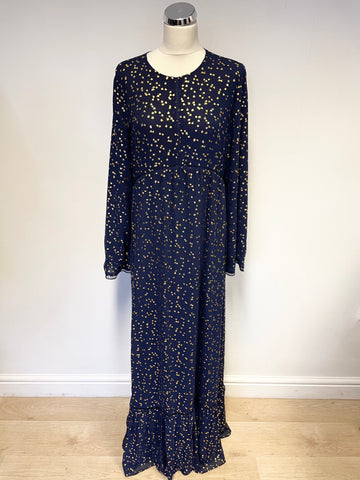 MICHAEL KORS NAVY & GOLD PRINT LATTICE GEORGETTE MAXI DRESS SIZE L