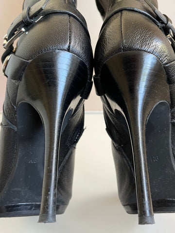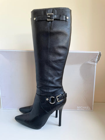 MICHAEL KORS CHEYENNE BLACK LEATHER BUCKLE TRIM HEELED KNEE LENGTH BOOTS SIZE 6/39