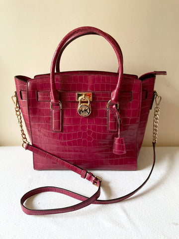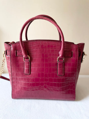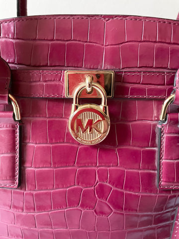 MICHAEL KORS HAMILTON DARK PINK LEATHER SHOULDER/ TOTE BAG