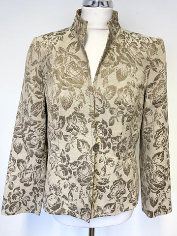 MINOSA BEIGE & BRONZE METALLIC FLORAL PATTERNED JACKET SIZE 16 PETITE